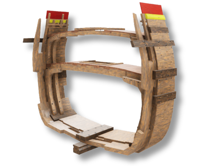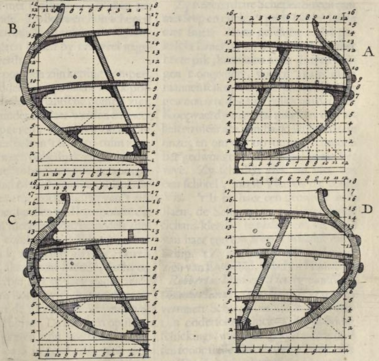 This part of the Witsen shipbuilding program covers the method by which parts were fastened together. What held a ship together? It shows the tools and techniques used for this purpose and where they were applied, demonstrated in a midship segment for clarity.